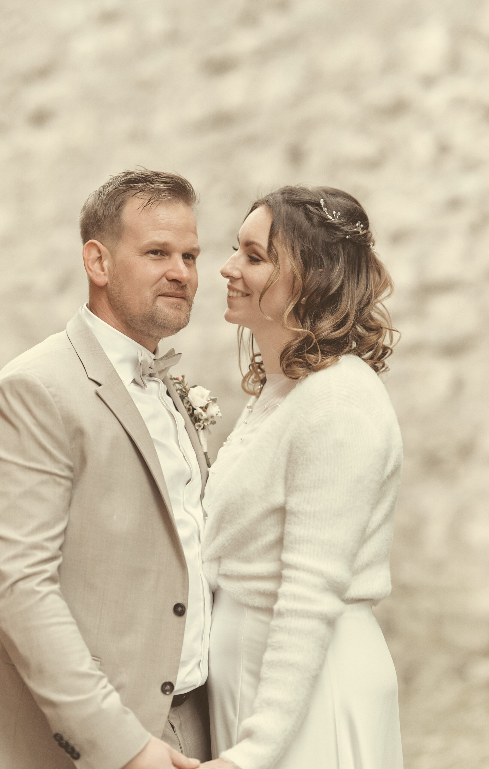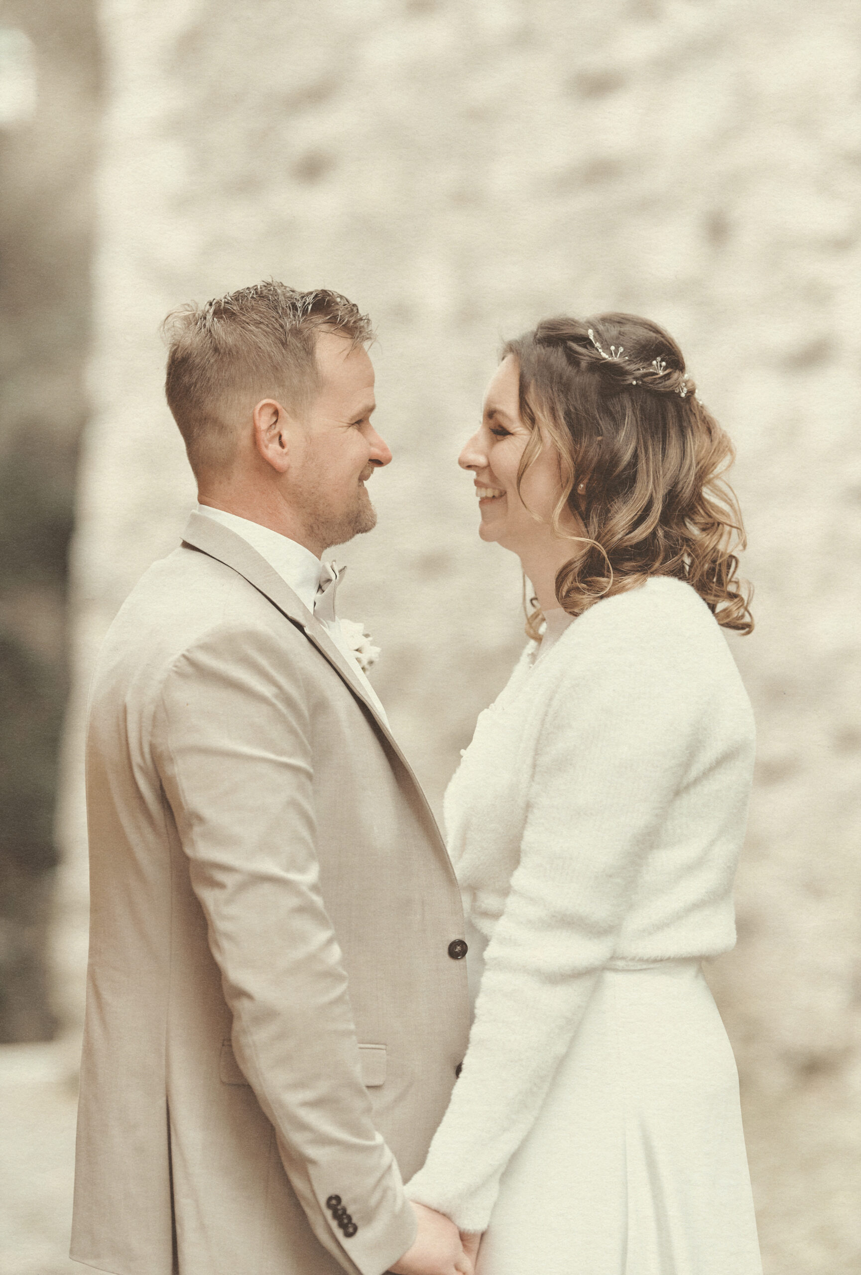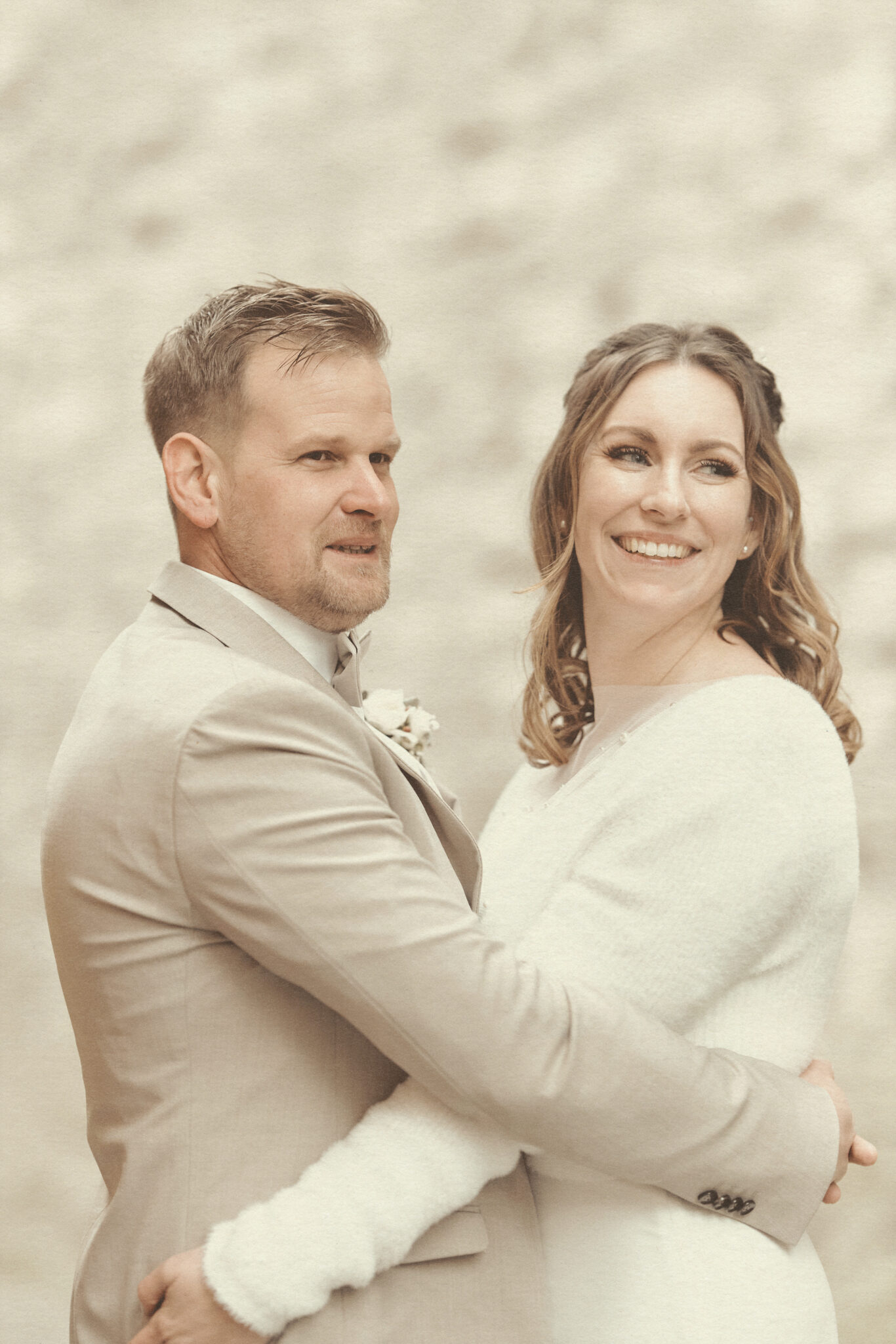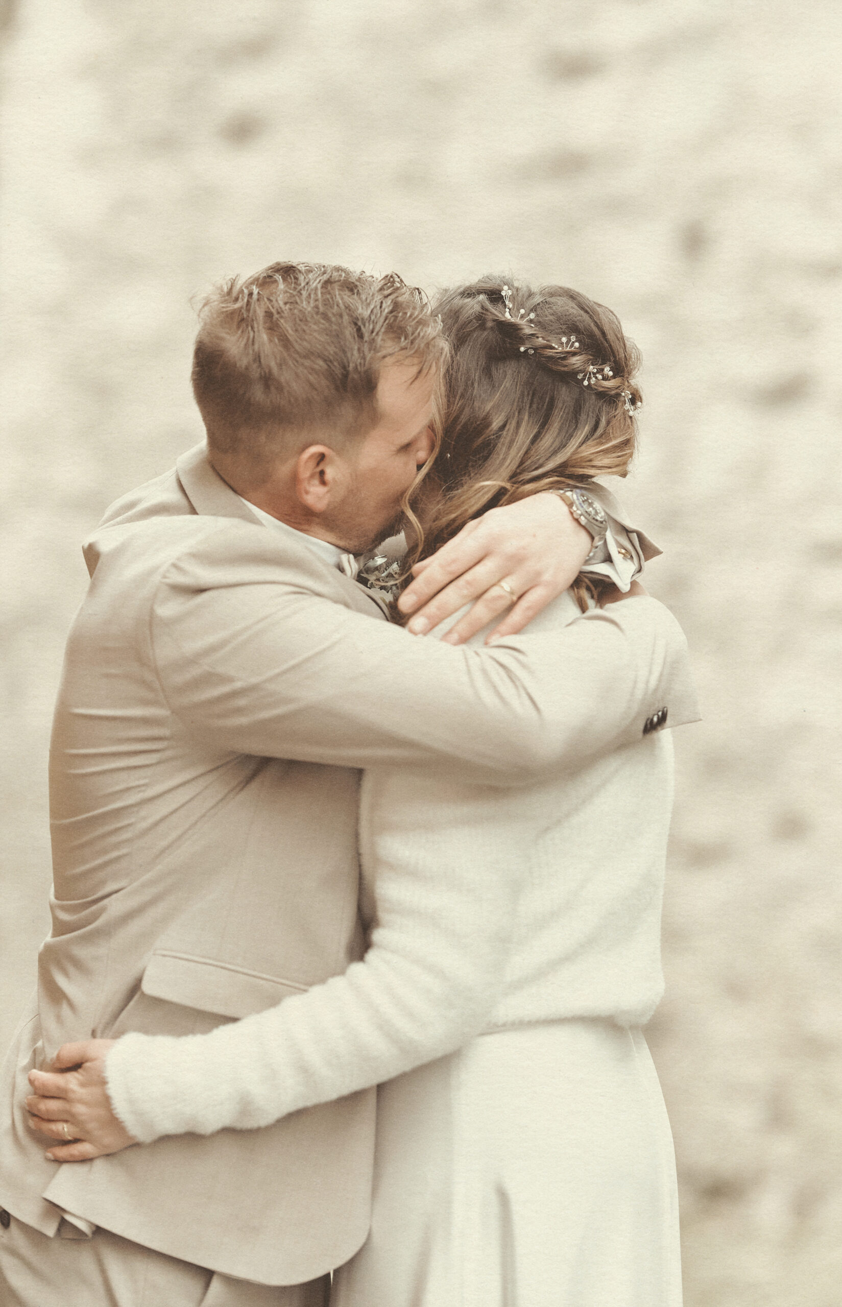 Jedes Detail wurde bewusst in einem edlen, cremig-matten Farbton gehalten, um die Natürlichkeit und Emotionen dieses Tages in einer zarten, harmonischen Bildsprache festzuhalten.