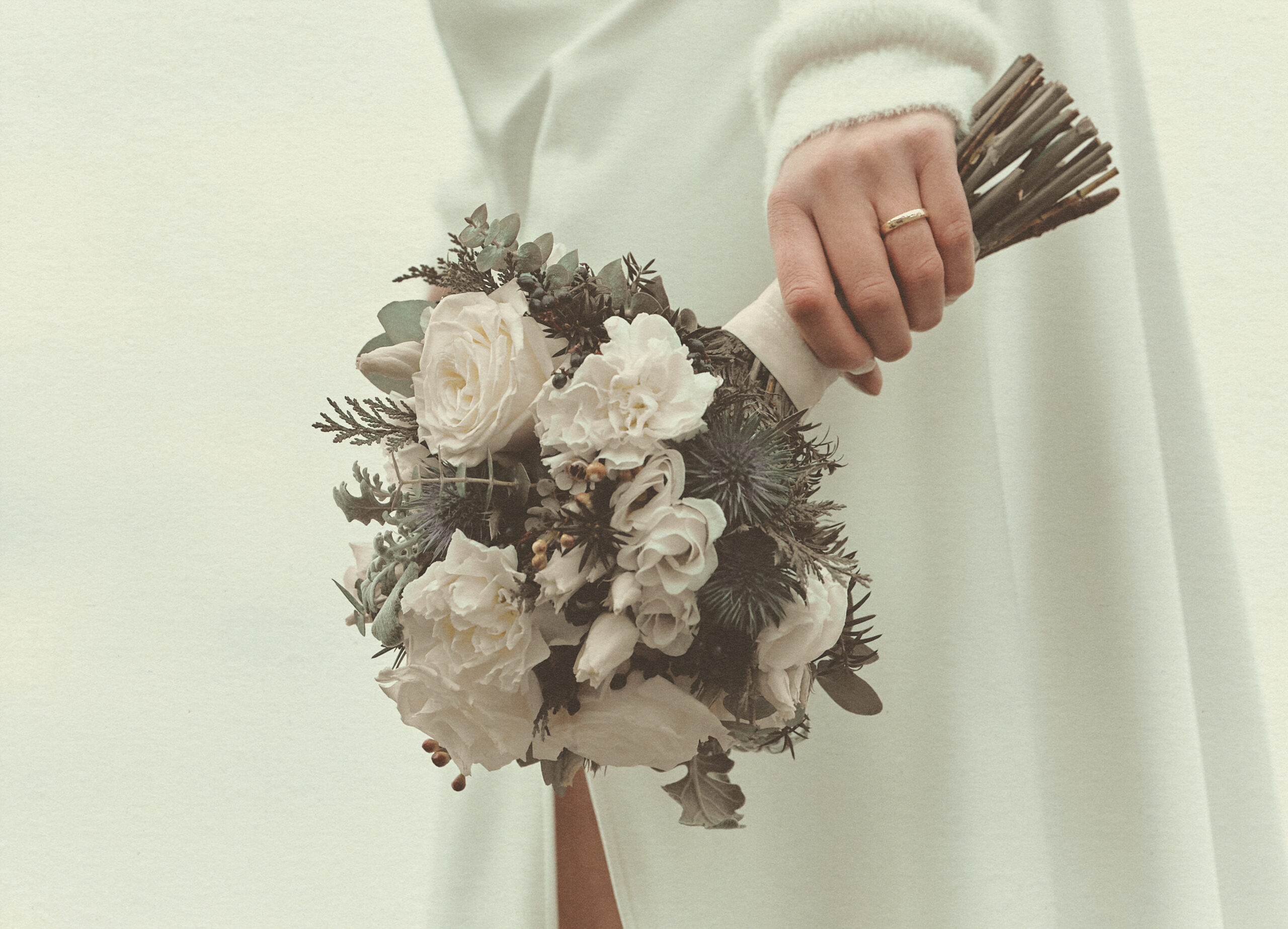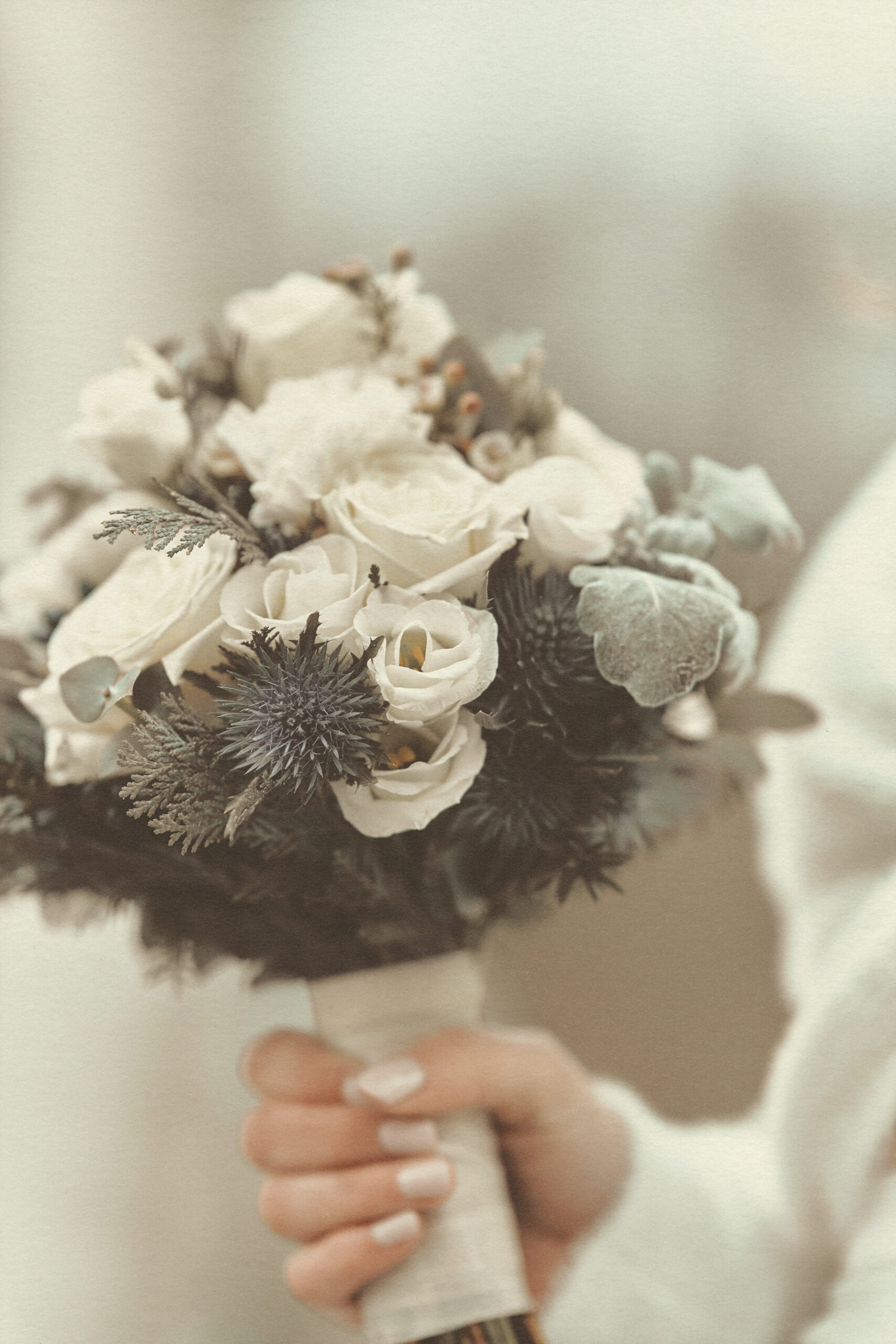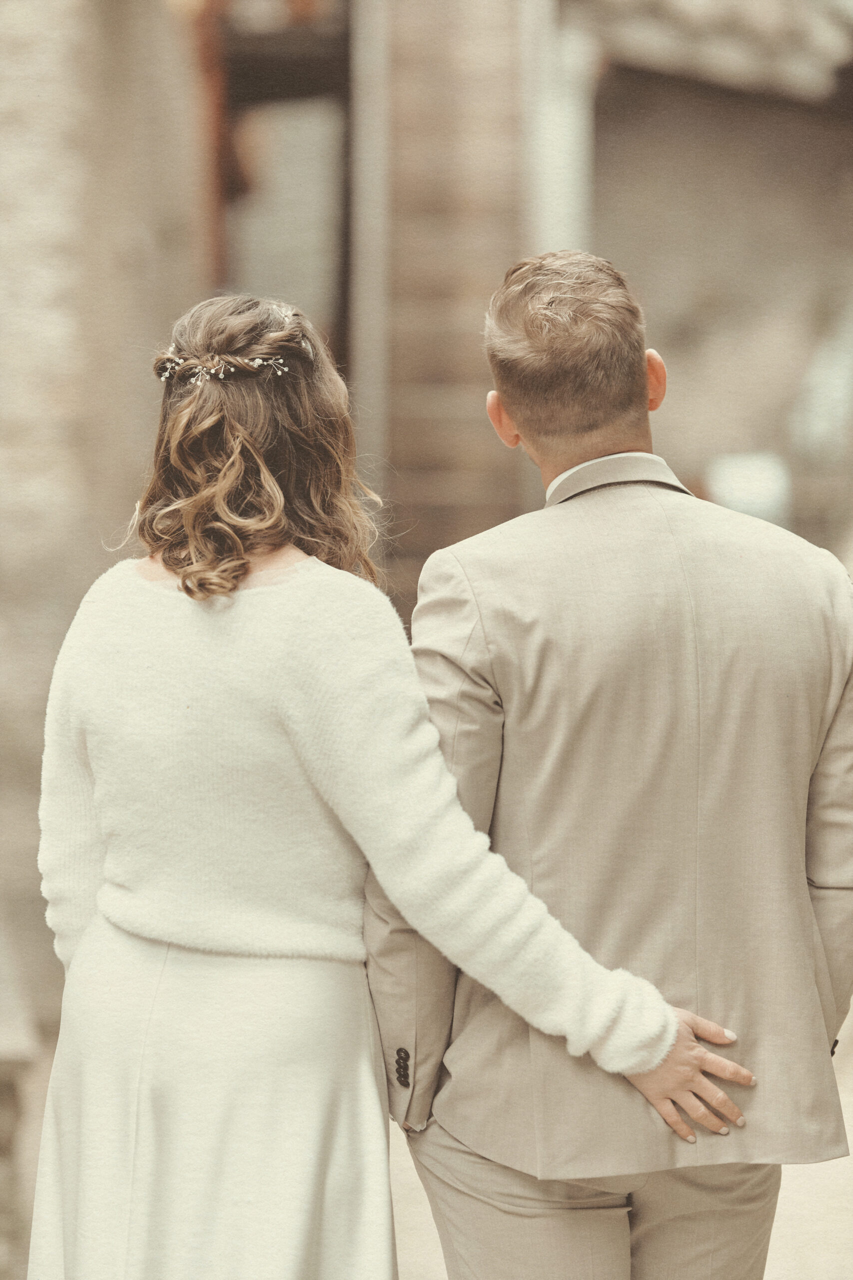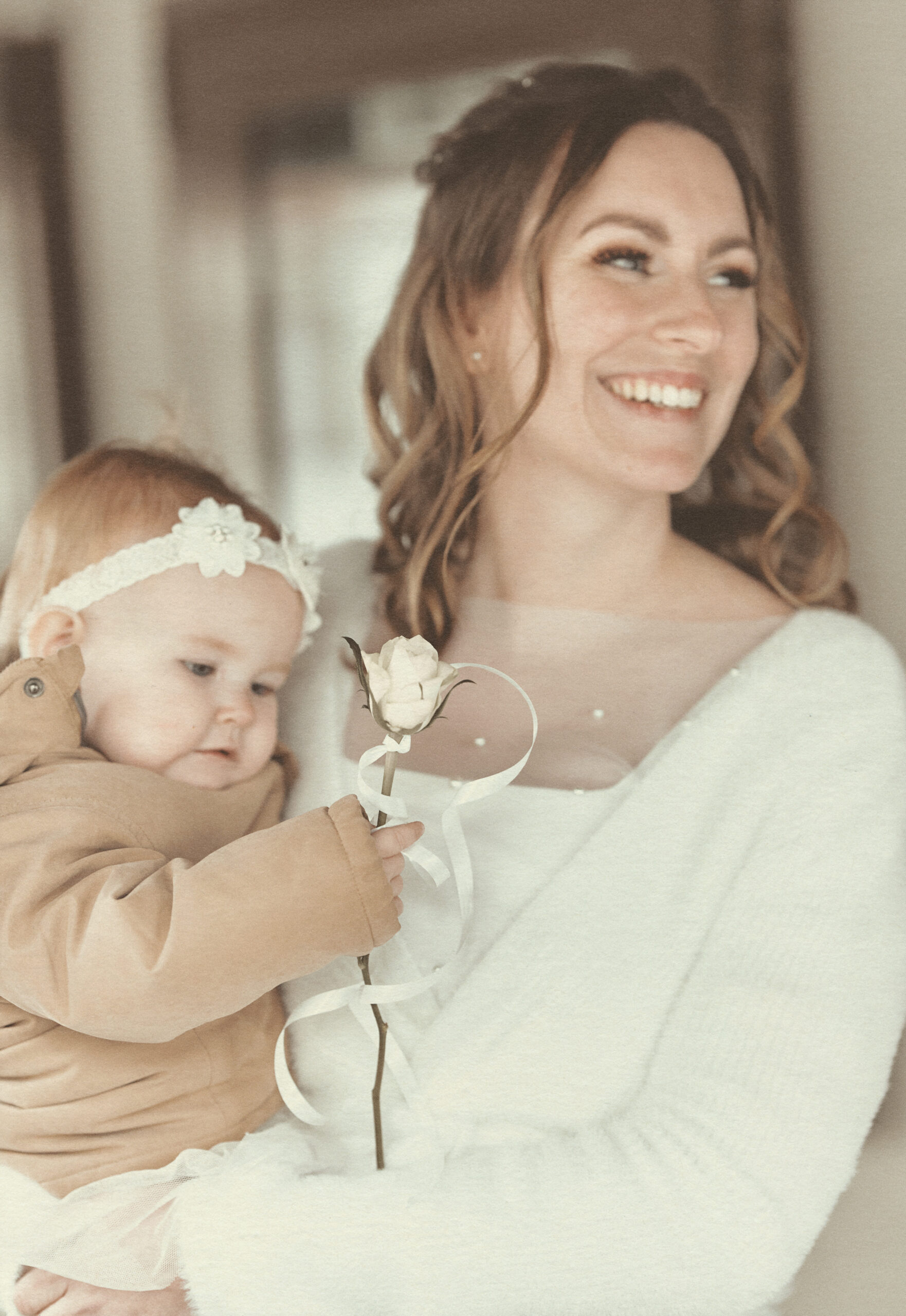 Jedes Detail wurde bewusst in einem edlen, cremig-matten Farbton gehalten, um die Natürlichkeit und Emotionen dieses Tages in einer zarten, harmonischen Bildsprache festzuhalten.