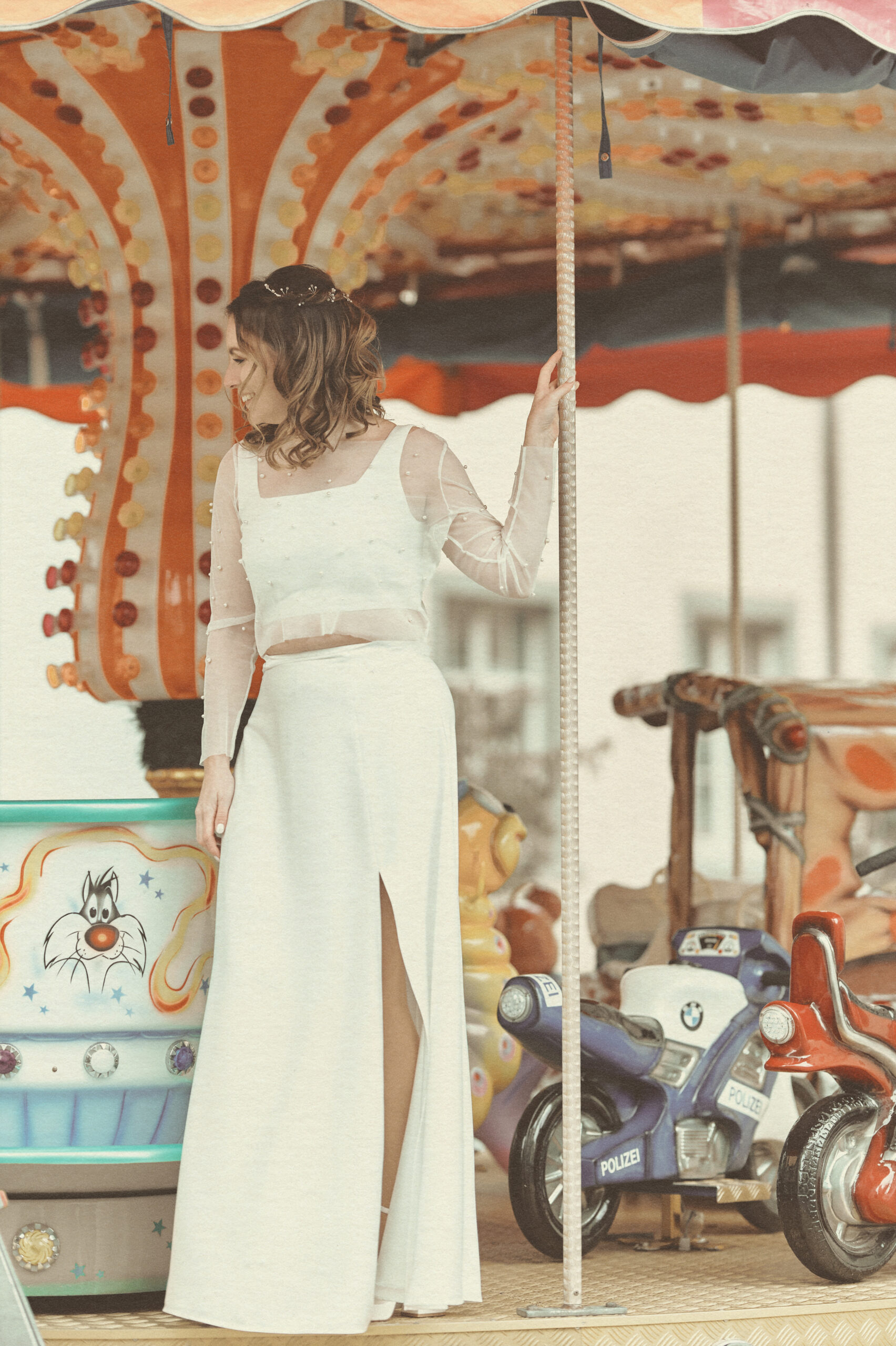 Der matte Look betont die zarten Strukturen des Kleides und das Spiel aus Licht und Stoff – ein Zusammenspiel aus Eleganz, Ruhe und zeitloser Feinheit.