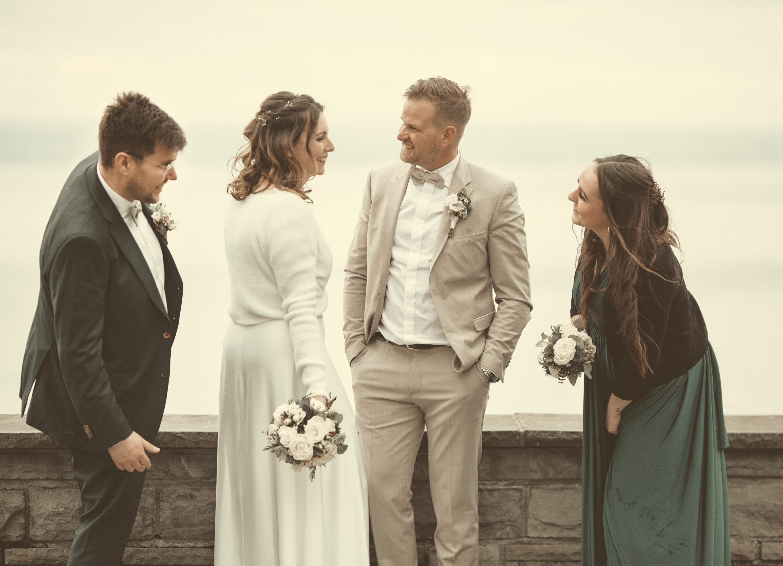 Manchmal schreibt das Wetter seine ganz eigene Geschichte — und gerade darin liegt ein besonderer Zauber. Diese Oktoberhochzeit war geprägt von sanftem Regen, warmen Farben und einer Leichtigkeit, die sich in jedem Lachen widerspiegelte.